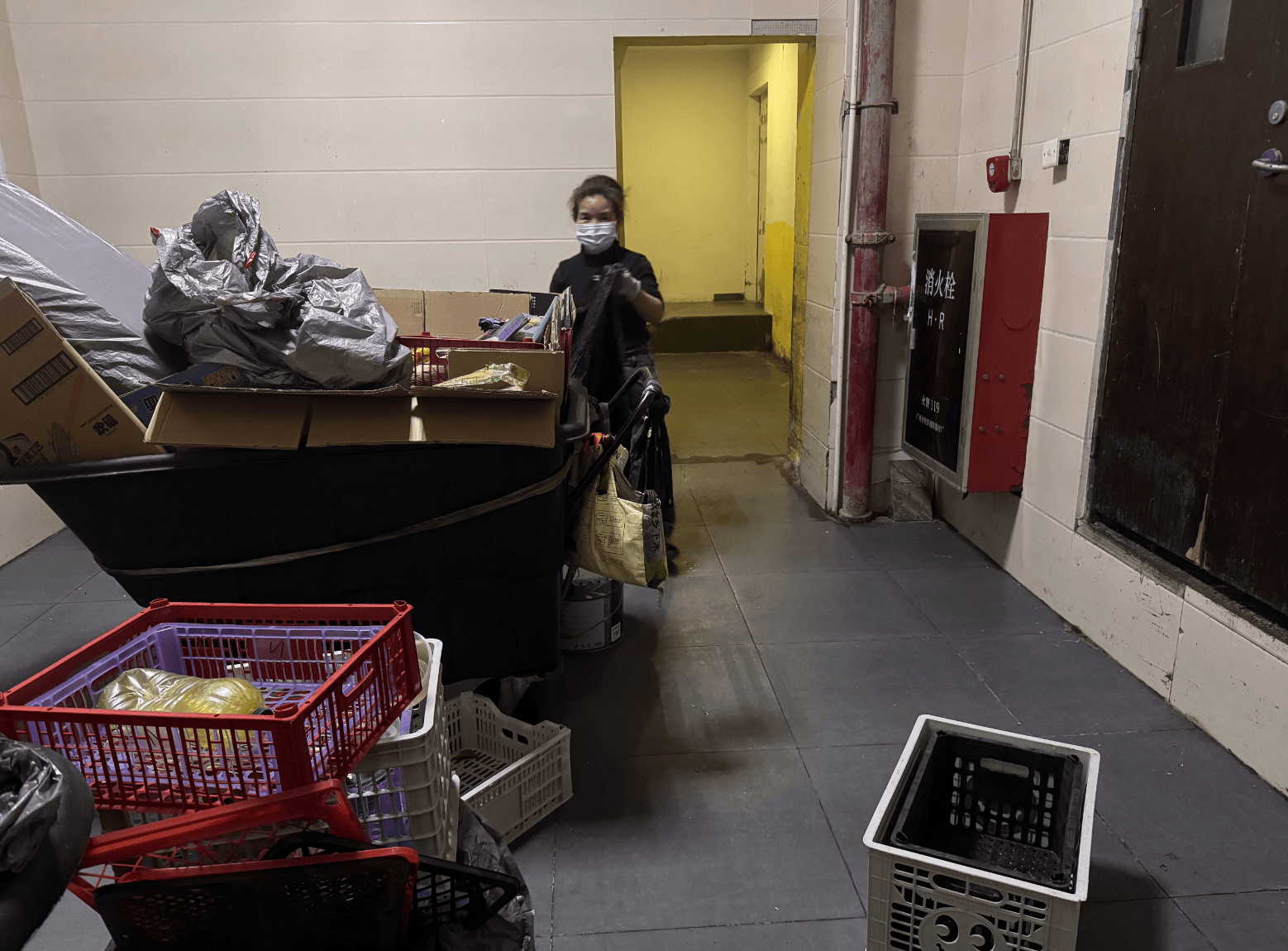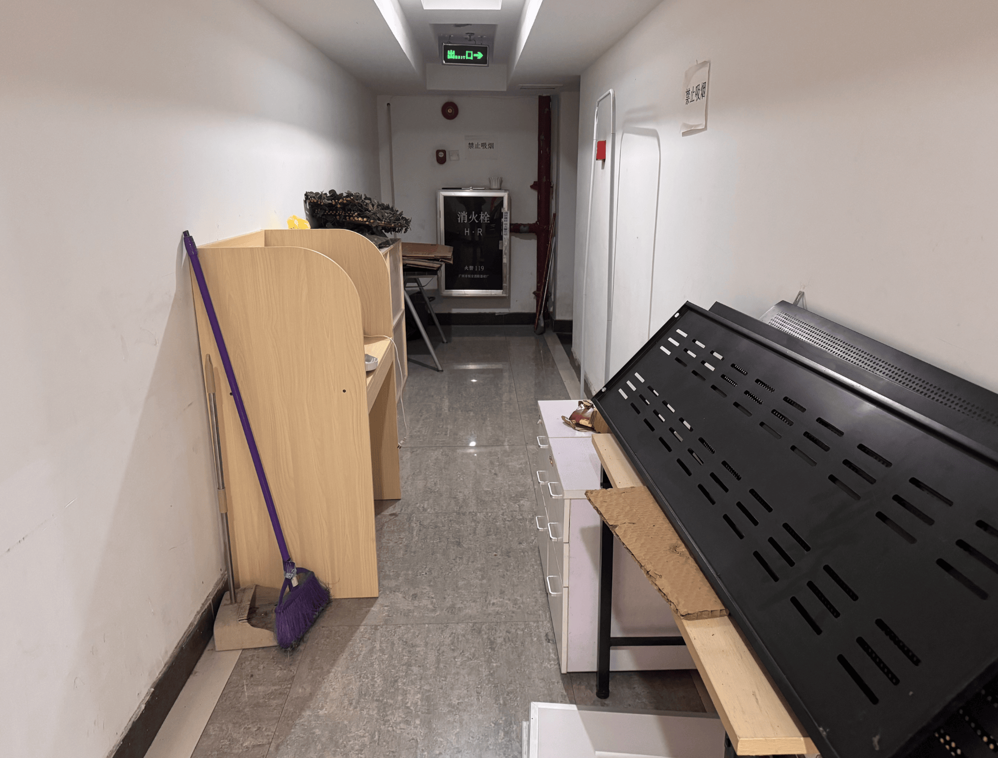 不过,记者在17日下午回访尚德大厦时发现,此前发现大楼高层放置在楼道内的鞋柜、书桌等杂物依旧未被清走。
